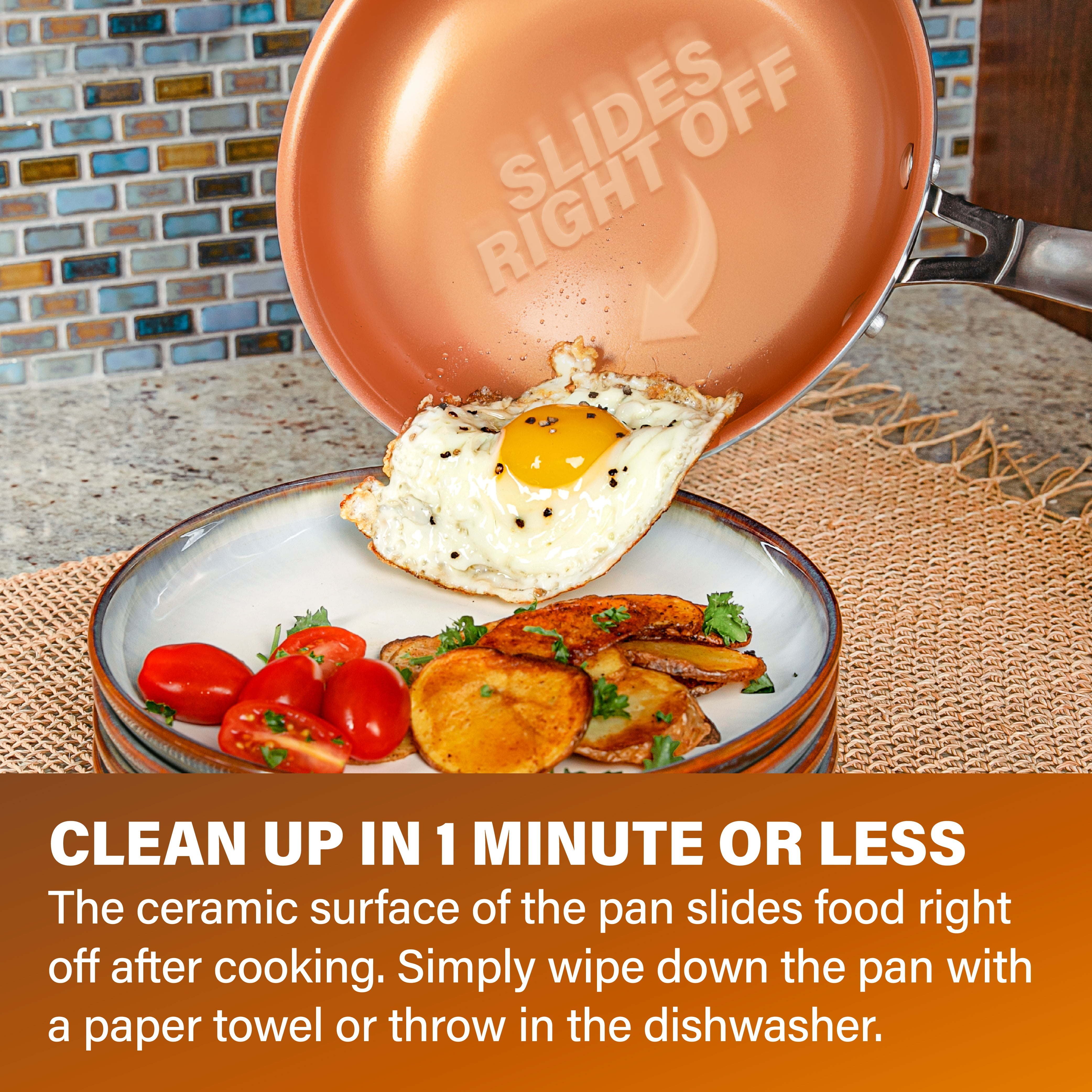 • ULTRA NONSTICK the nonstick cooking surface is coated 3x, reinforced with ceramic and titanium to deliver the ultimate food release. No oil or butter needed makes for healthier eating and provides for hassle-free, 1-2-3 cleanup
