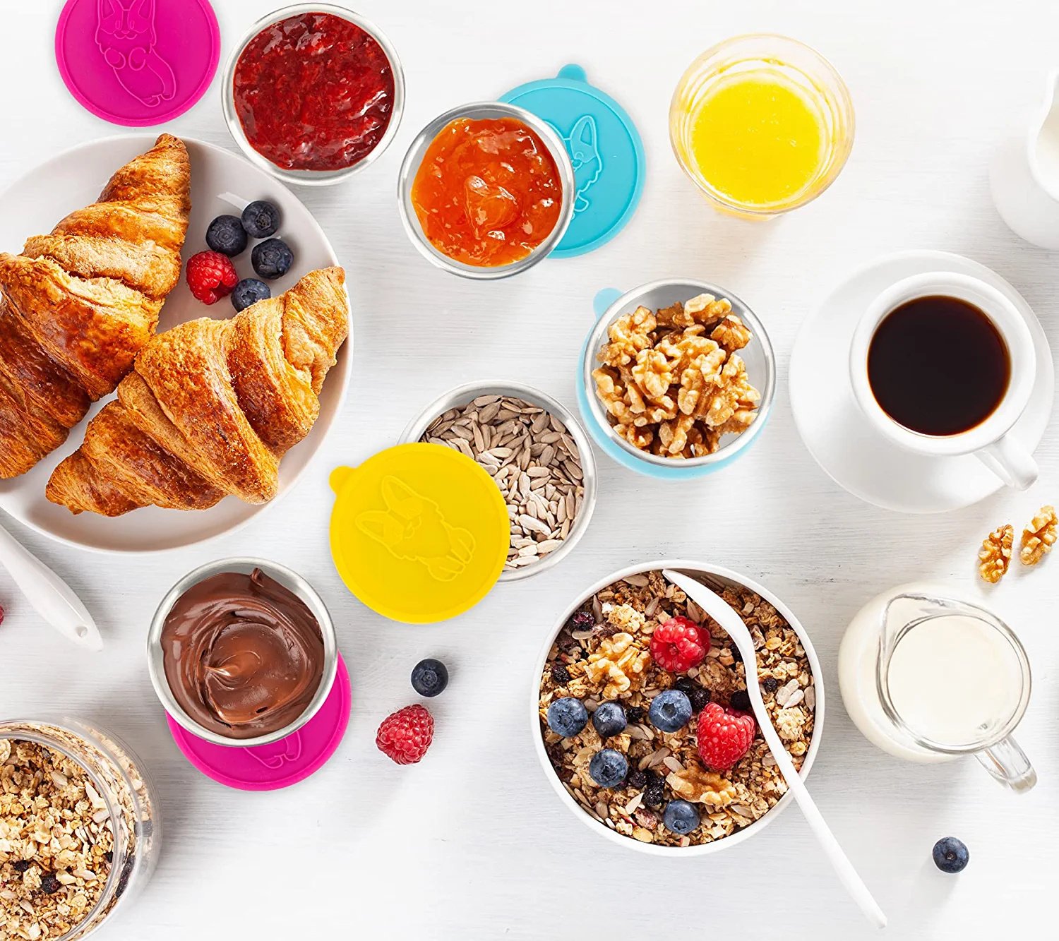 [No More Spills]The improved sealing mechanism enables our silicone lids not only very easy to put on and take off; but tight enough to keep the kids food containers sealed; no more leaks or spills. So much easy to add deliciousness to your lunch.